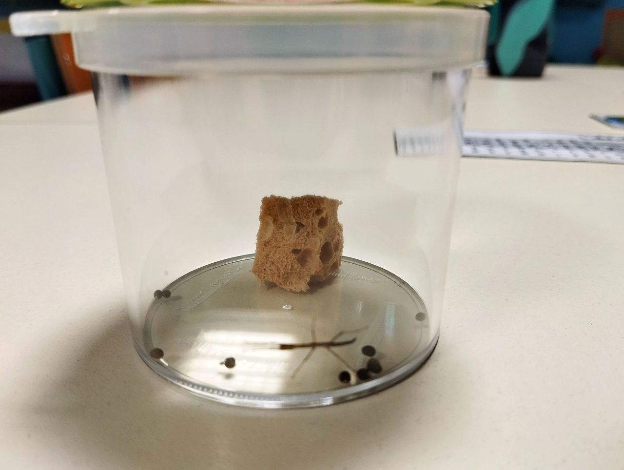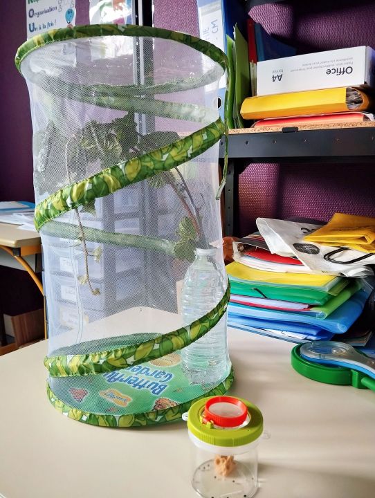 Parmi les hypothèses des enfants, il y avait la bonne réponse : champignons microscopiques, graines de fleurs, arbres, crottes, pépins, œufs en train d'éclore ... Il s'agit bien d'œufs de phasmes !!!! et nous avons le plaisir de vous annoncer qu'une naissance a eu déjà lieu pendant le week-end !!! Avec cet élevage, nous allons pouvoir étudier et examiner la vie du phasme (sa naissance, sa croissance, son alimentation, sa reproduction ...). Nous avons beaucoup de questions sur le sujet et sommes ravis du projet !!! Nous avons donc installé une serre d'élevage pour accueillir nos futurs nouveaux camarades de classe 😃🦗