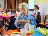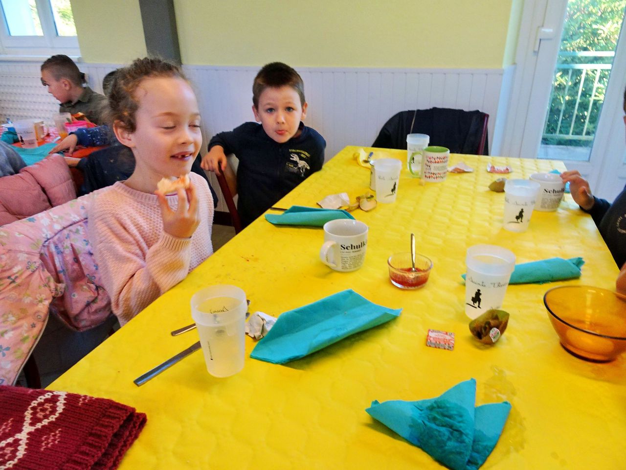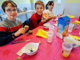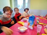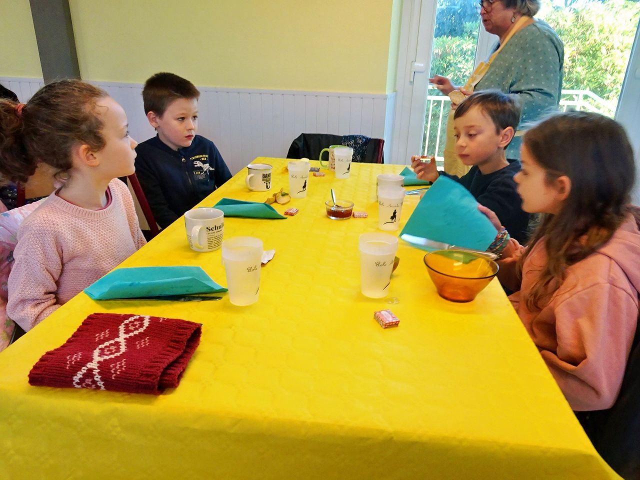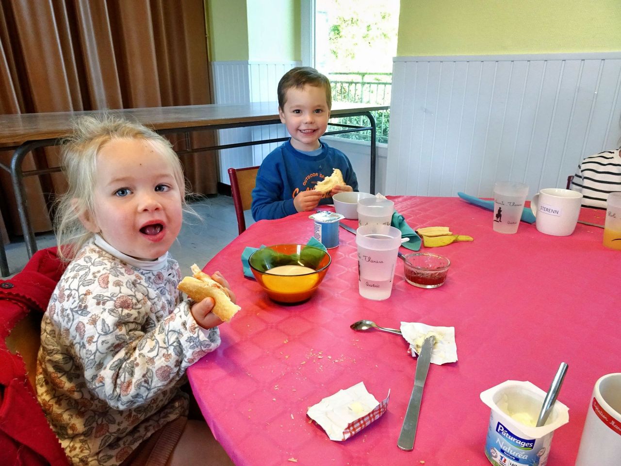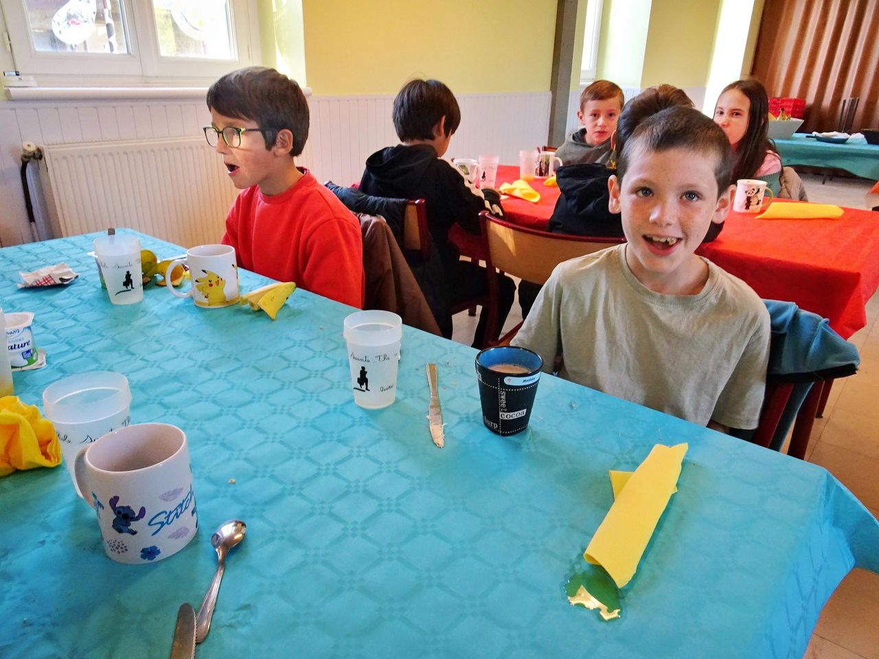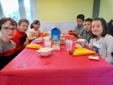 La semaine passée, les élèves des 3 classes se sont retrouvés le lundi matin pour partager le traditionnel petit-déjeuner à l'école. Au menu : pain, cracottes ou brioche, confiture, beurre, jus d'orange, fruits, yaourt ou fromage, chocolat chaud ... de quoi bien commencer la journée et l'année scolaire tous ensemble ! Un moment très apprécié par tous !